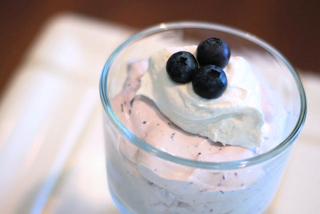 topping and fresh blueberries.